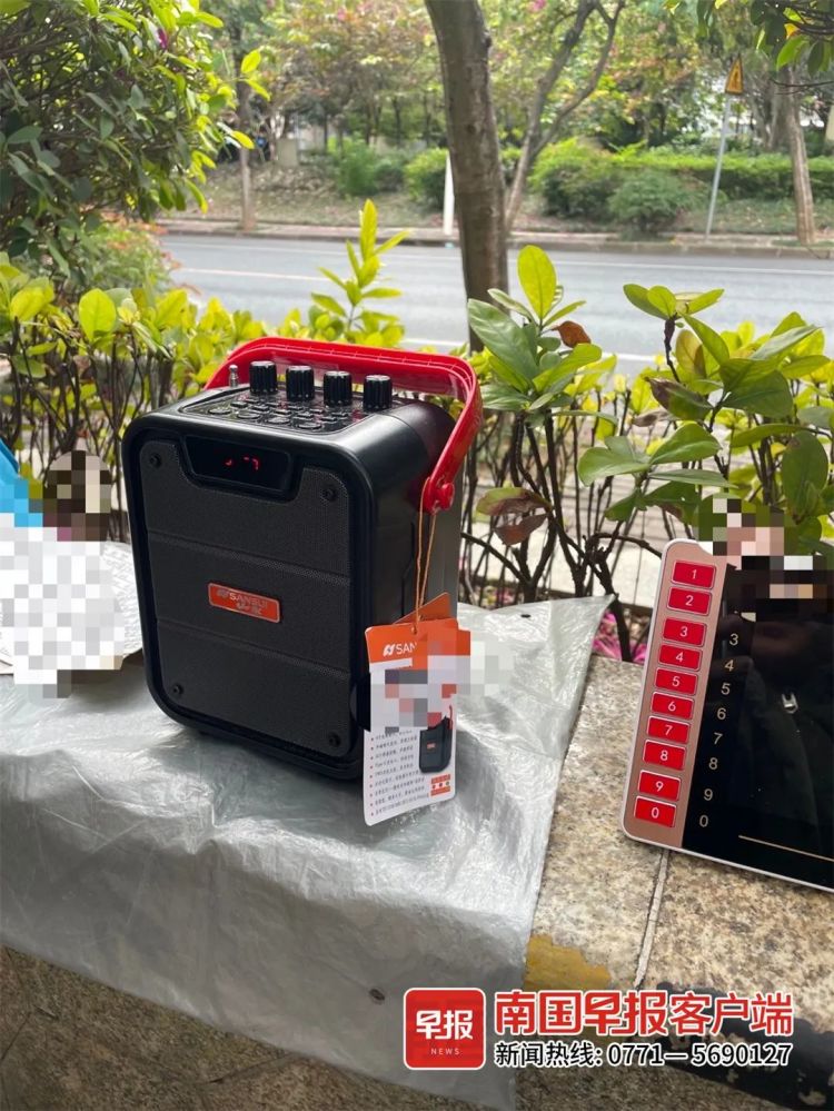 南宁一小区广场上,跳舞爱好者使用的音响。南国早报记者 周伟武摄