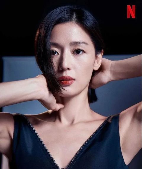 韩流不老女神全智贤也是发际线美人,剪了短发的她露出了清晰的下颌线,相比中分造型,2:8比例的侧边分发显脸小的同时又极具御姐范,谁能相信她已经四十岁了呢?