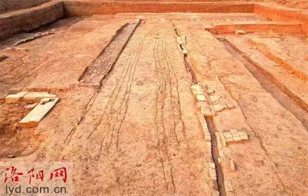在北廊房和北排房的北侧,考古人员还发现了一条南北宽约6米的东西向道路。记者在现场看到,道路保存较好,路面残存有车辙,两侧有铺砖散水和排水沟等设施。