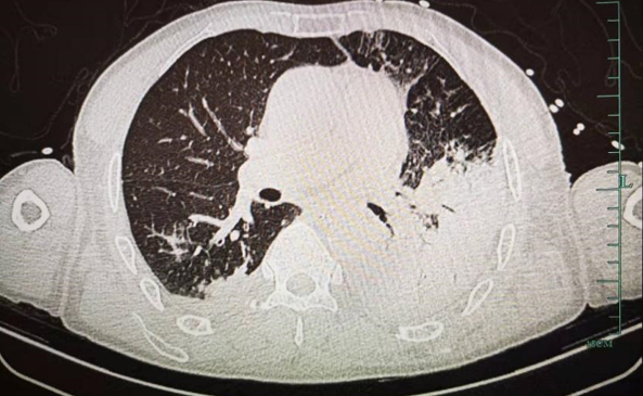 图片可见一侧肺部几乎变成了“白肺”,存在严重炎症