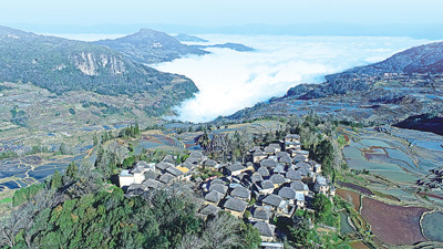 云南省红河哈尼族彝族自治州元阳县阿者科村梯田。