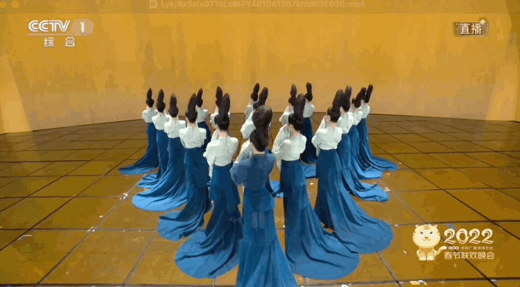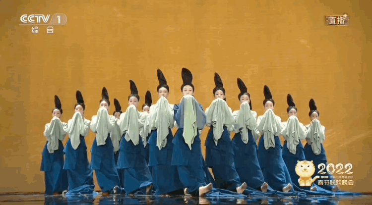 由于时间限制,虎年春晚上展示的是《只此青绿》的一段群舞。韩真表示,虎年春晚里的片段是将《千里江山图》中的青绿设色抽离出来,抽象成一位女性人物形象。这一段群舞是在表达群山层峦叠嶂的概念。