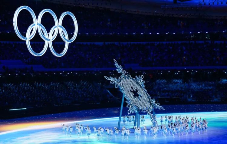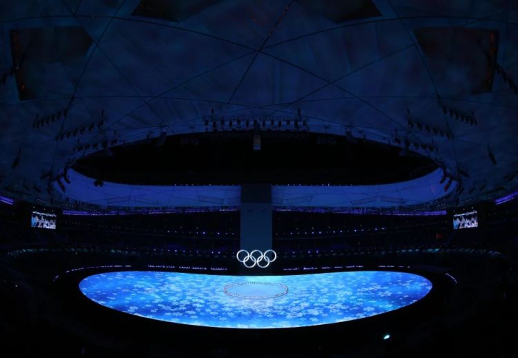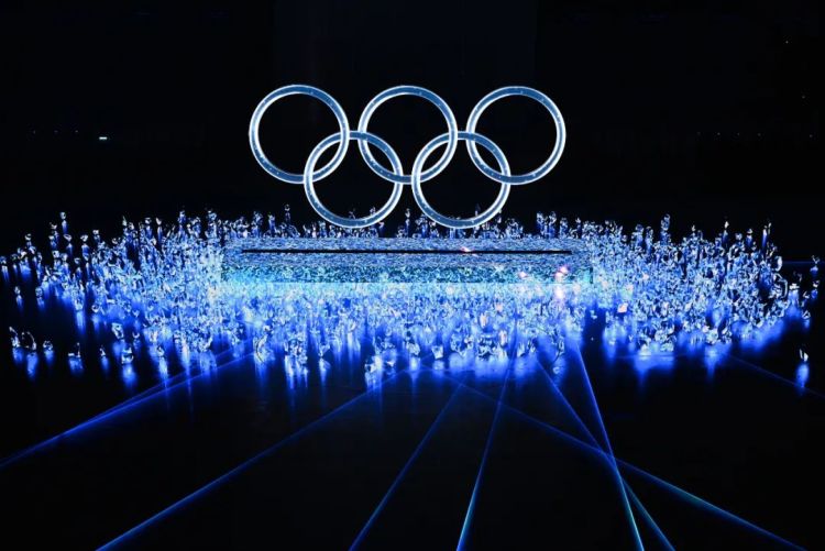 2月4日晚,第二十四届冬季奥林匹克运动会开幕式在北京国家体育场举行。这是开幕式上的“冰雪五环”环节。新华社记者 曹灿 摄