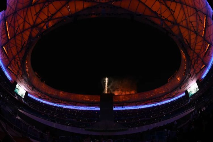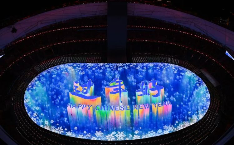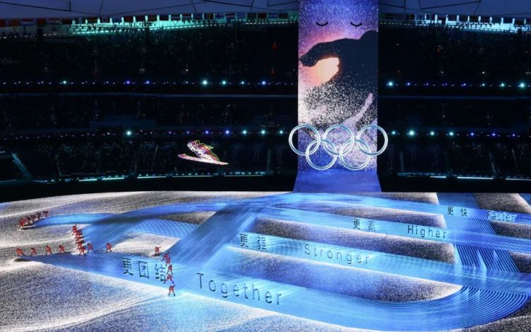 2月4日晚,第二十四届冬季奥林匹克运动会开幕式在北京国家体育场举行。这是场地上的奥林匹克格言。新华社记者 陈益宸 摄
