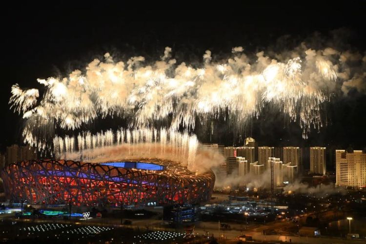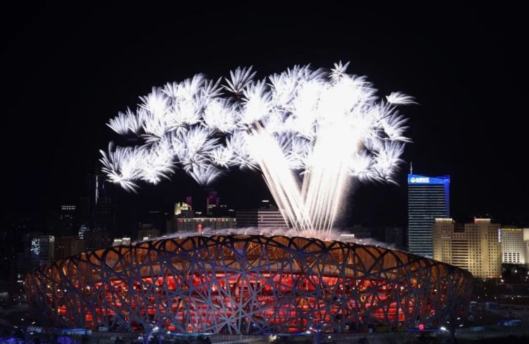 2月4日晚,第二十四届冬季奥林匹克运动会开幕式在北京国家体育场举行。这是焰火表演。新华社记者 邬惠我 摄