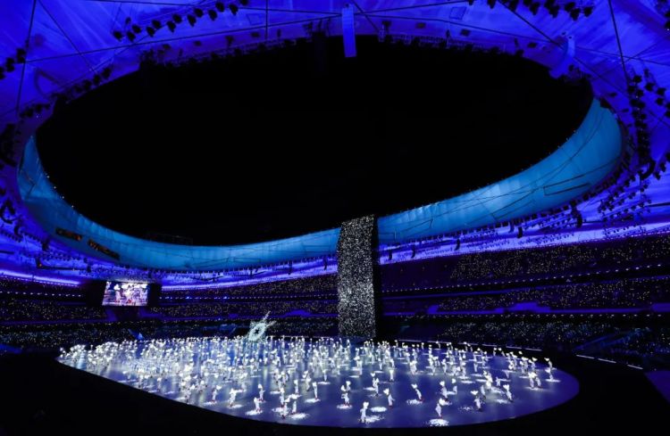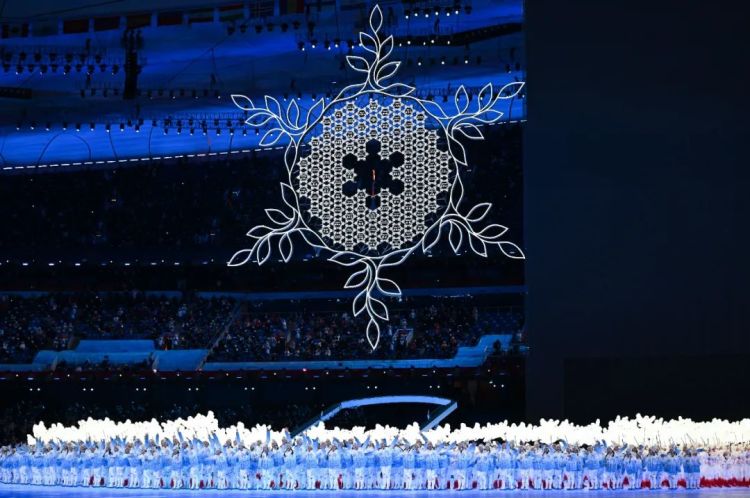2月4日晚,第二十四届冬季奥林匹克运动会开幕式在北京国家体育场举行。这是开幕式上的“构建一朵雪花”环节。新华社记者 熊琦 摄
