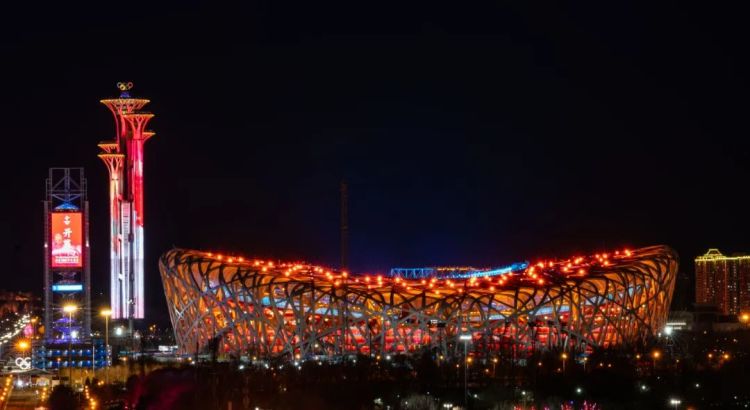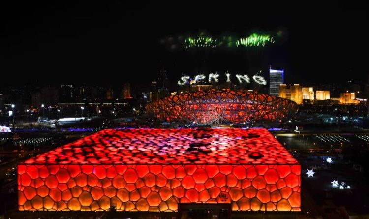 2月4日晚,第二十四届冬季奥林匹克运动会开幕式在北京国家体育场举行。这是国家体育场外拍摄的画面。新华社记者 才扬 摄