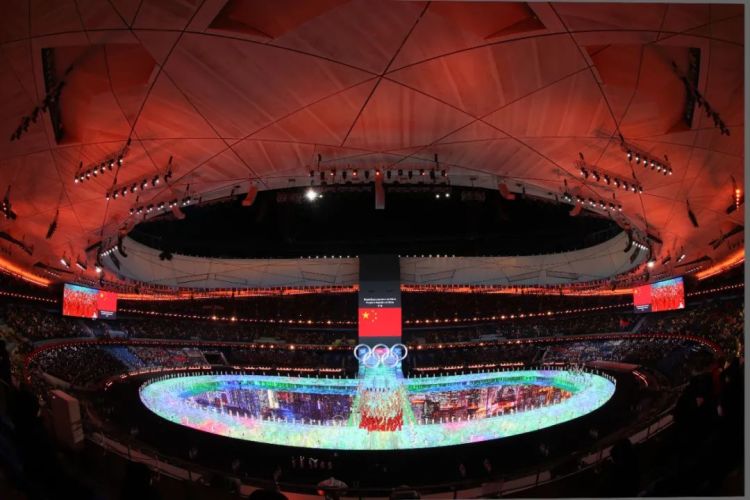 2月4日晚,第二十四届冬季奥林匹克运动会开幕式在北京国家体育场举行。这是中华人民共和国国旗入场。新华社记者 陈益宸 摄