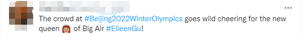 “北京冬奥会上,人们为大跳台上的新女王谷爱凌疯狂欢呼!”