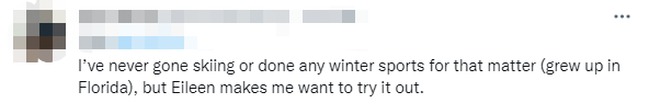 “我从来没有滑雪或做过任何冬季运动(在佛罗里达长大),但谷爱凌让我想尝试一下。”