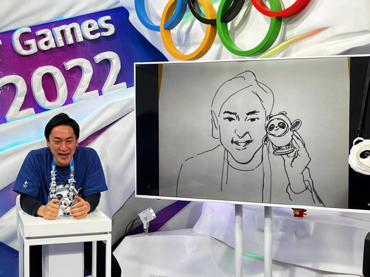 “把画板拿来。”曹雪听到这一请求,立刻对身边的人说。辻冈义堂似乎还没反应过来,反复喊道:“什么?现在?”“现在就要开始画了吗?”得到肯定答案后,辻冈义堂手捧“冰墩墩”,对着屏幕保持微笑。曹雪在屏幕那头一边作画,一边说,这还是第一次为别人画和“冰墩墩”的合影。