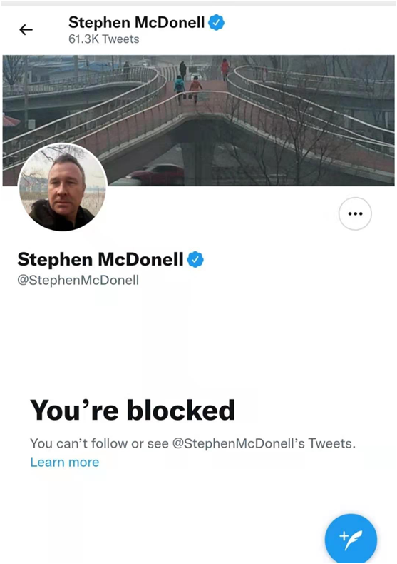 推特除了封禁来自中国IP的账号,也针对替中国辟谣的外国人。