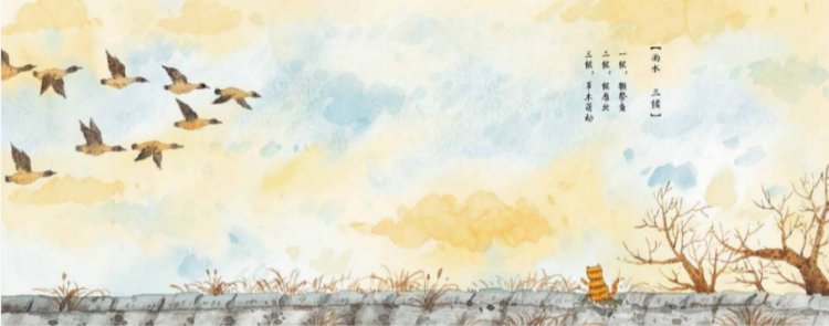 在春天的气息召唤下,我们翻开图画书,可以看到天空上雁归来了,这正是雨水二候鸿雁来。可惜忙碌的人们很难抬头看到这样的景象,但是四合院平房上的小猫咪,却看到春天的使者已经来了。