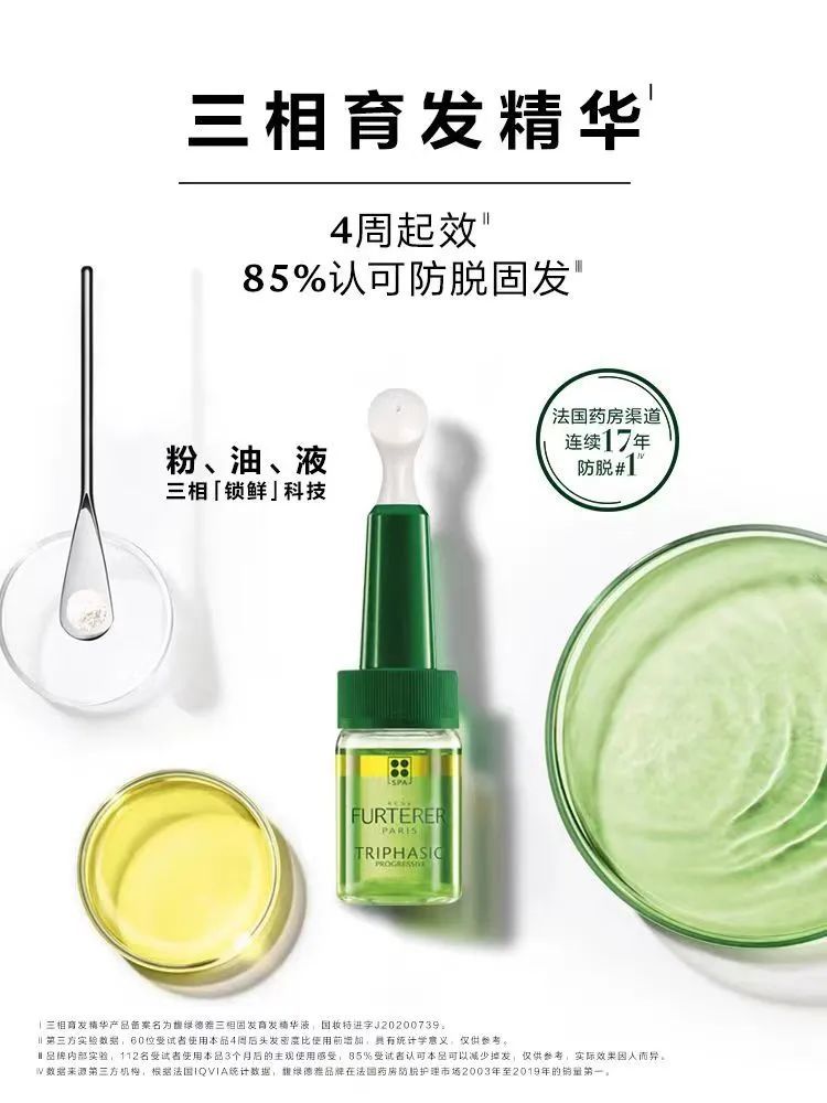 正是上述对这些育发成分的深耕,馥绿德雅三相精华才能够帮助毛囊全方位开启生长期、退行期和休止期三大通路,从而达到育发、防脱发的功效。“区别于市面上主打单一成分功效的防脱产品,三相精华功效全面的同时,植物提取物也保证了产品的安全与温和。”馥绿德雅品牌方如是介绍。