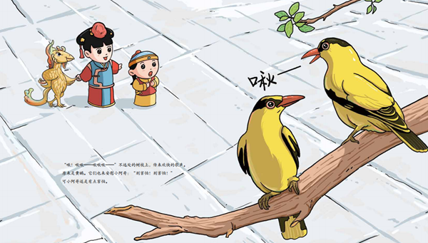 在《惊蛰》篇中,故宫的屋脊小兽们化身为故事中的“导游”,带领小读者走访慈宁宫花园,看满园春色、听黄鹂鸣叫、了解惊蛰物候小百科、见识慈宁宫里的各种宝物珍品......