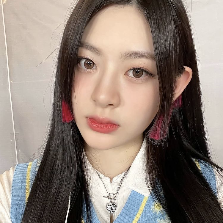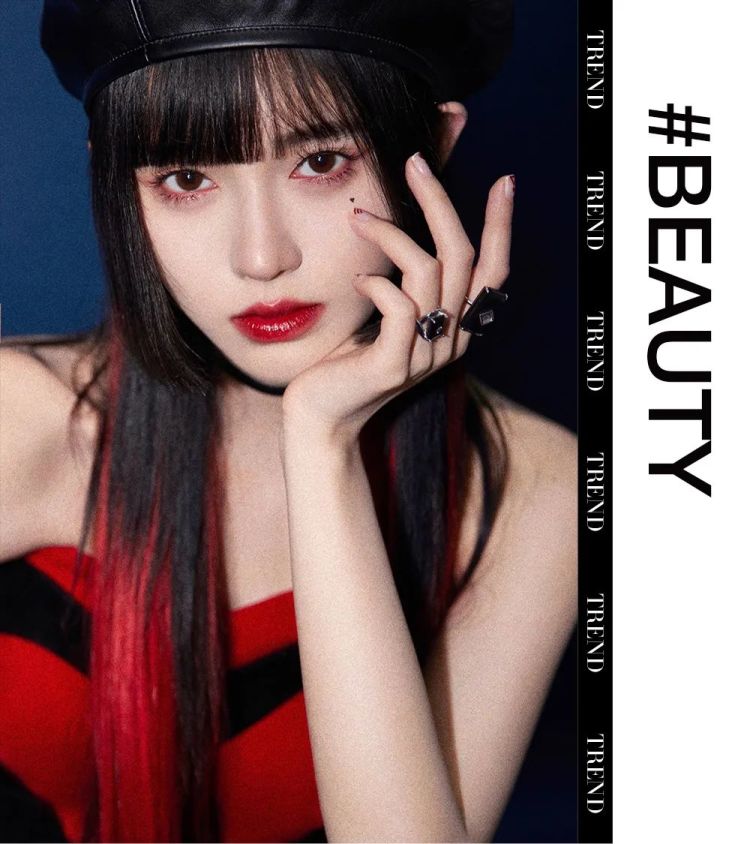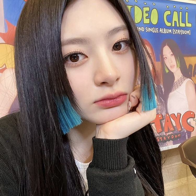 Stayc的Seeun一直是黑长直的青春路线,换了发尾染的公主切后,各种颜色的发尾染换着来,立马变身个性拽姐。