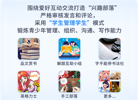 为满足青少年强烈的交流和表达欲望,掌阅课外书还特别推出了围绕爱好的互动社区“兴趣部落”,采用“学生管理学生”的模式,辅以对发言和评论的严格审核,为青少年提供绿色的交流阵地,锻炼他们管理、组织、沟通、写作等能力,全面提升综合素质。