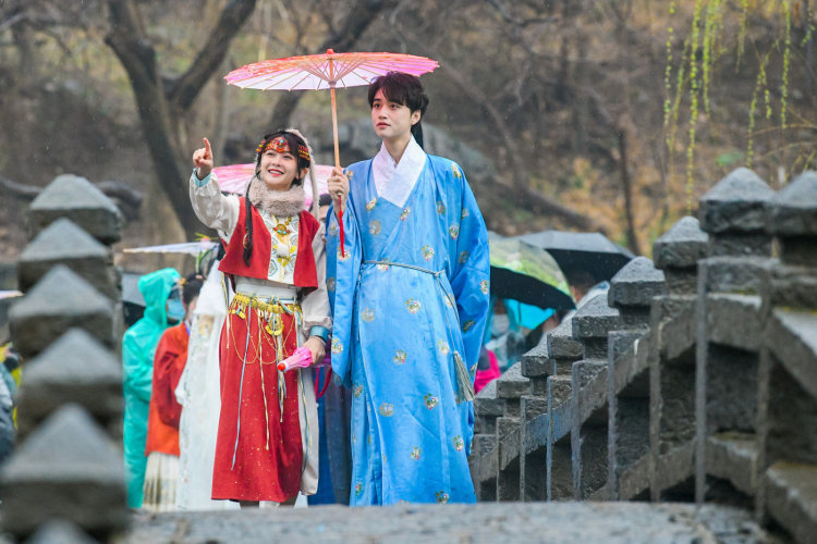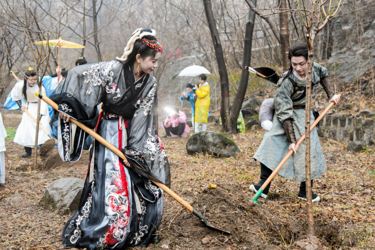 年轻人们身穿历代传统服饰徜徉于春色中,女孩子们遵照古代的传统带来唯美的祭花赏红仪式,虔诚地祈福。参与到花朝节中的人们,在各种饶有趣味的活动中感受春天的气息,拍下一张张纪念美好瞬间的照片,也分享在社交媒体上成为一道道亮眼风景。