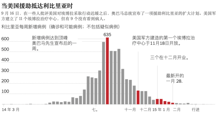 2013年12月,历史上最严重疫情——埃博拉爆发。埃博拉是一种严重的出血性病毒,可导致肌肉和关节疼痛、腹泻、呕吐和出血,在2014年夏天从几内亚森林传播到利比里亚和塞拉利昂的首都。世界卫生组织(WTO)当年8月宣布该流行病为"国际关注的突发公共卫生事件",之后,迟缓的国际医疗和人道主义救援才开始行动。作为援助先锋,美国总统奥巴马在一个月后向西非派遣了一支三千多人的部队。与预期相反,到2014年12月,病例数急剧下降,利比里亚的流行于2015年6月结束。整个爆发期间,共有28600人被感染,11325人死亡。