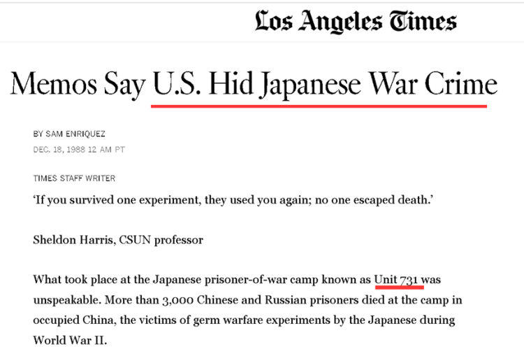 不过,美国的这个套路,对中国人来说倒也不陌生了。我们都记得,当年二战结束后,日本的许多法西斯分子不仅没有得到美国的严惩,他们中那些对中国人犯下了严重罪行的战犯,比如731部队的那些恶魔,居然还进入了美国的德特里克堡军事实验室,成为美国的帮手。(这可是美国媒体自己披露和承认的事实!)