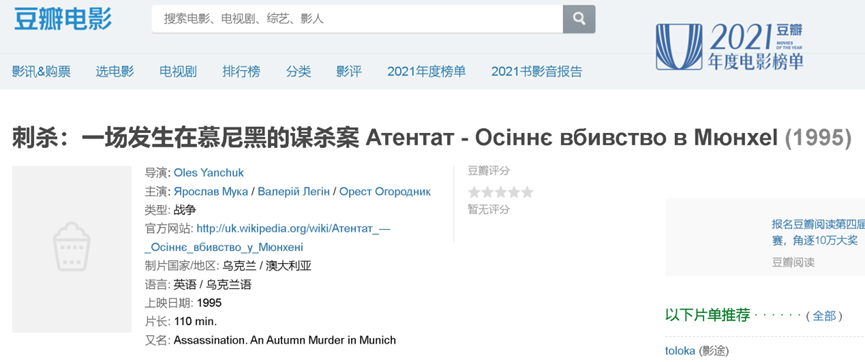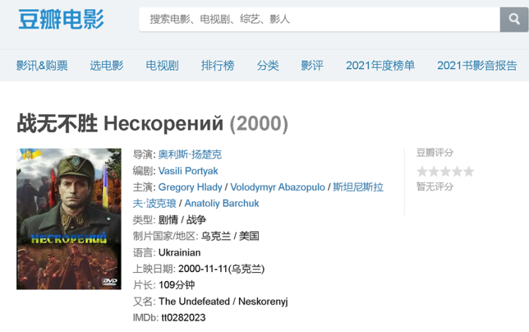 对此,耿直哥核实后发现,被美国驻华大使馆以正面的口吻所宣传介绍的这个“美国乌克兰人大会委员会”,确实曾在1995年和2000年时资助一名乌克兰导演拍摄了两部分别讲述班德拉和舒赫维奇的电影。其中,讲述班德拉的电影名叫《刺杀:一场发生在慕尼黑秋季的谋杀案》(Assassination. An autumn murder in Munich),讲述舒赫维奇的电影叫《战无不胜》(The Undefeated)。