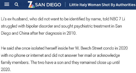 但近日,Li Yan的前夫接受当地媒体采访时确认了Li Yan确实精神出了情况,而且早在2010年时她就被查出有躁狂抑郁症,曾经在美国和中国寻求过心理医生的治疗。但自2020年以来,她开始将自己关在如今发生惨剧的公寓里,公寓里没有电话和网络,她也不回家人的电邮,甚至不告诉家人发生了什么。她的前夫还透露两人有一个儿子,在2020年之前曾与Li Yan关系密切。