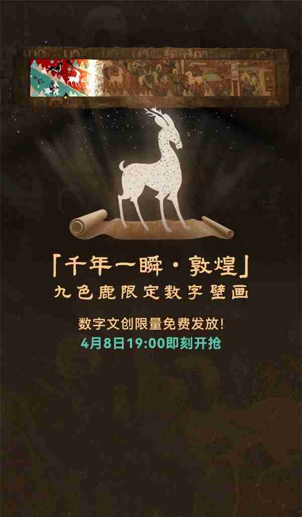 《千年一瞬-敦煌九色鹿限定数字壁画》公测活动将于4月8日19:00正式开启,关注“数字猫”微信公众号参与活动,即有机会获得先行体验名额,开启穿越千年的数字文创之旅。