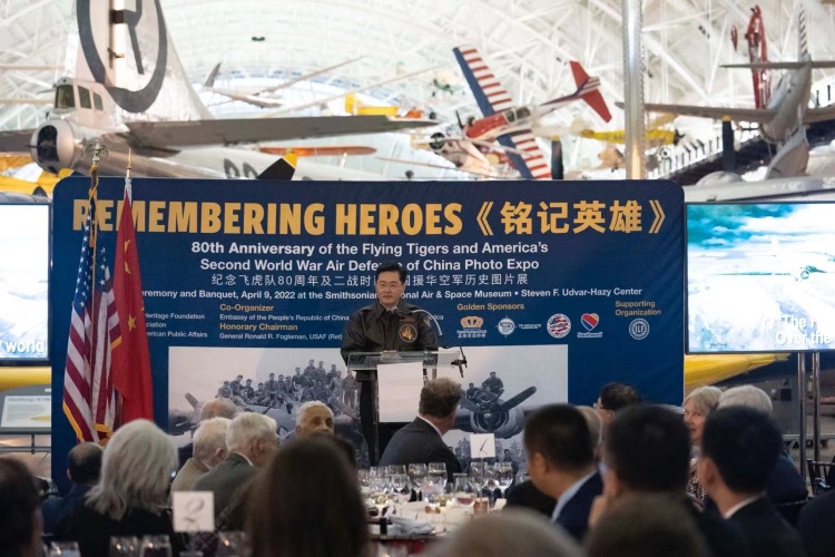 我在今年驻美使馆云上春节招待会上曾说:“在虎年,我们也不要忘记‘飞虎队’等许多动人的故事。”今天很高兴参加这个图片展的开幕式,纪念飞虎队这段中美关系中的伟大篇章。