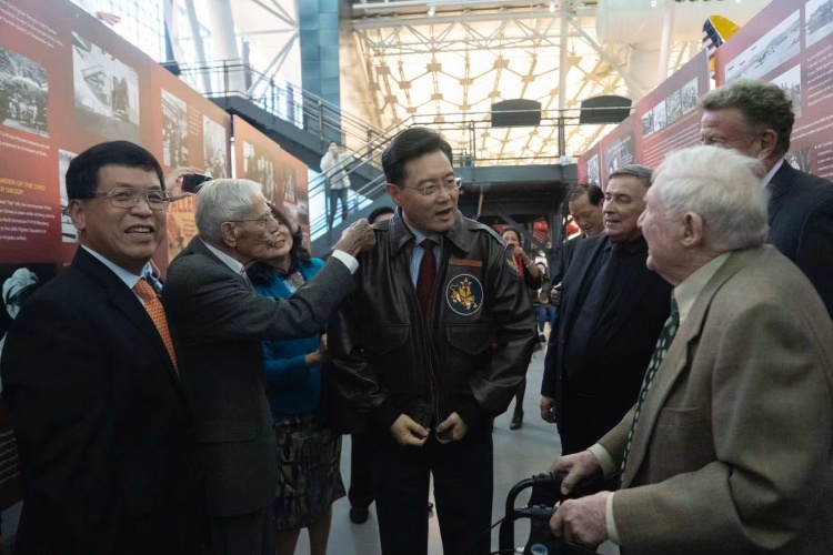 刚才我仔细参观了图片展,仿佛回到了81年前那段战火纷飞的岁月。在中国抗日战争最艰难的时刻,有一批壮志凌云的美军飞行员,在中华大地上展翅高飞。在此,我谨向各位飞虎队老兵和老兵后代致以最崇高的敬意!