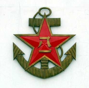 世界各国海军军徽大多有海浪、铁锚、锚链、舵盘、风帆等标志,有的甚至就是一艘完整的战船。人民海军的军徽,是在海军成立后不久设计的。1949年4月23日,华东军区海军成立时,还没有自己的军徽。同年6月,中央军委发布命令,公布中国人民解放军军徽样式,为镶有金黄色边的五角红星,中嵌金黄色“八一”两字,亦称“八一”军徽。1950年4月14日,中国人民解放军海军领导机关在北京成立。其后,海军司令部组织了海军军徽的设计。海军军徽是“八一”军徽加铁锚,这是人民海军最早的统一标志。