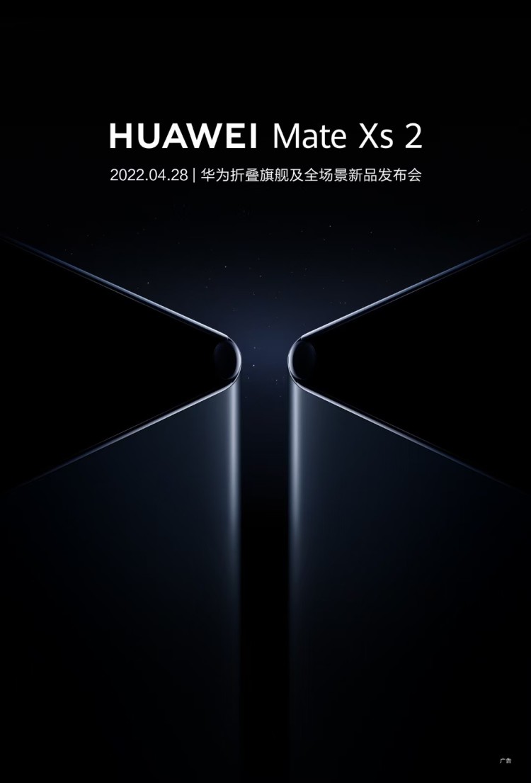 【环球网报道 记者 张阳】4月22日上午,华为官宣将于4月28日发布新款折叠屏手机Mate Xs 2。此前华为曾先后发布Mate X、Mate Xs、Mate X2、Mate X2典藏版等折叠屏手机。