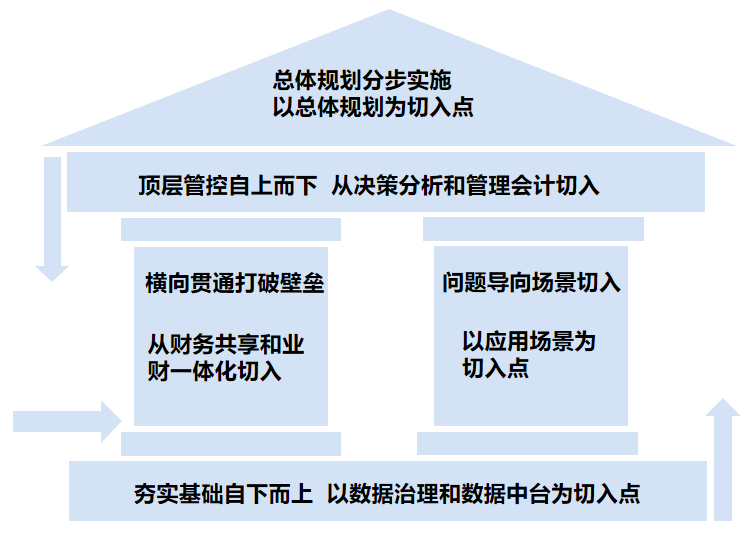 作为企业内部的一个系统性工程,在很多企业,不同层级的管理者对财务数字化的路径难以达成统一。对此,以总体规划为切入点,基于规划分步实施就成为对众多企业而言经济效益最高的普遍选择。