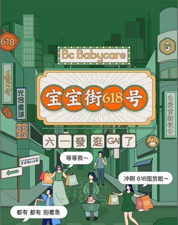 618到来之际,母婴品牌Babycare正式官宣主题活动,并开启限定款产品预售。具有浓烈市井气息的茶餐厅等场景打造,加上港剧风格的限定款产品设计,同样唤起了年轻一代父母的童年和青春回忆。作为设计师创立的母婴品牌,Babycare此次不仅是让用户们重温童年,更是秉持“为爱 重新设计”的理念对经典元素进行了再设计,采用的了与传统大促红色主色差异较大的绿色色调,以“發”字为主设计元素,将潮流和回忆融合,打造了让人印象深刻的设计风格。