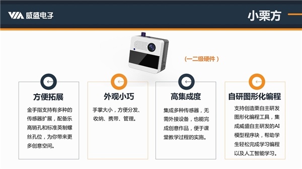 此次发布的创造栗新品小栗方、威栗派、威栗云,是威盛教育人工智能教育领域经历几代教育创新与变革,也为义教新标准下的中小学人工智能教育,带来了前所未有的体验。