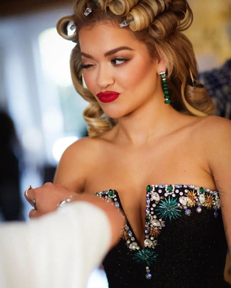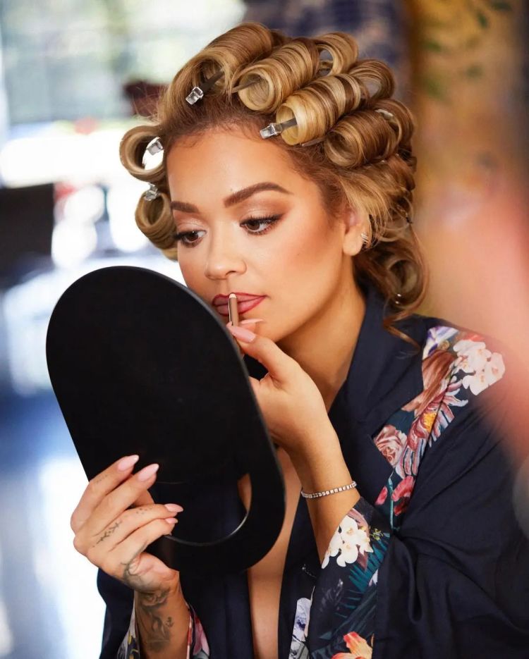 如果不想要用烫发的方式来完成,Rita Ora这种最古早的发卷,也够美美的出一趟门了。