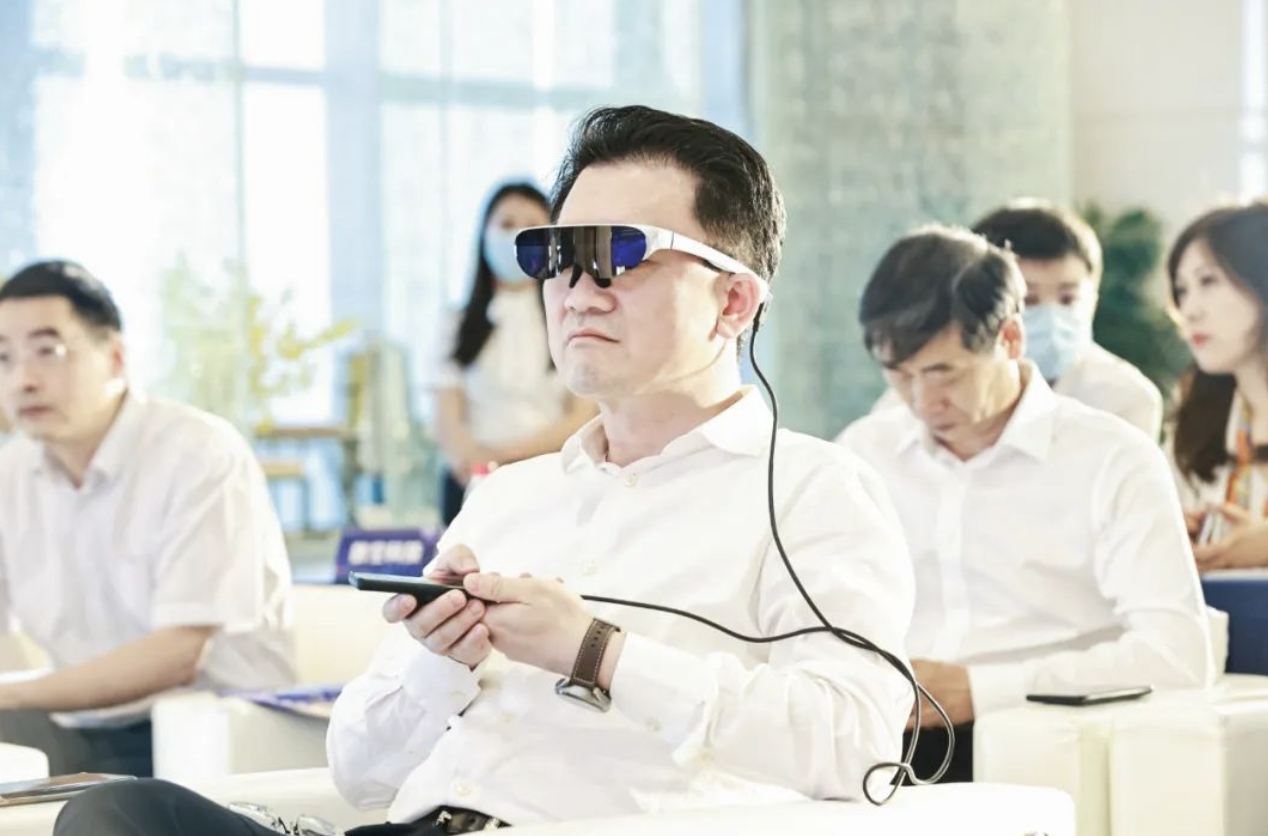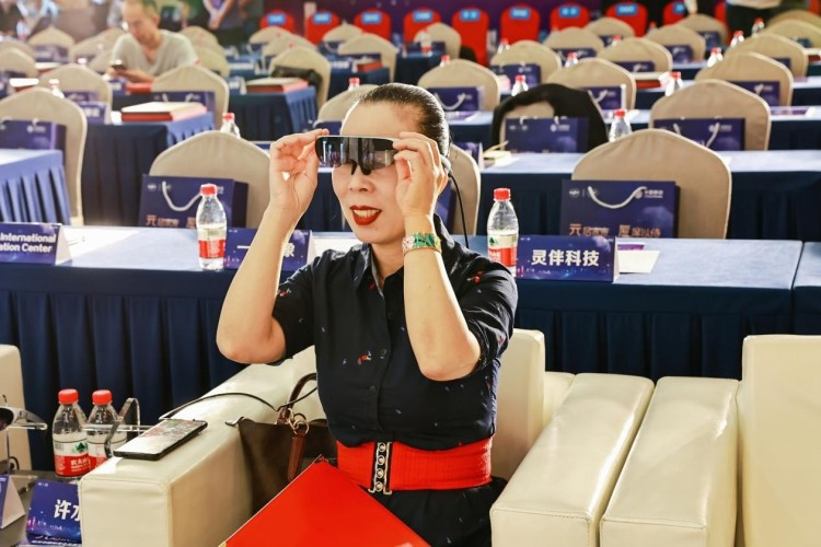 值得特别注意的是,元宇宙虚拟会议由51world和Rokid共同打造。Rokid 作为本次虚拟现实融合会议模式的硬件支持方,与会成员通过公司AR眼镜Rokid Air体验到了元宇宙会议的虚实融合感。