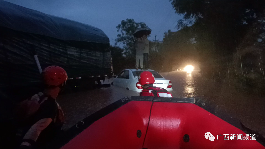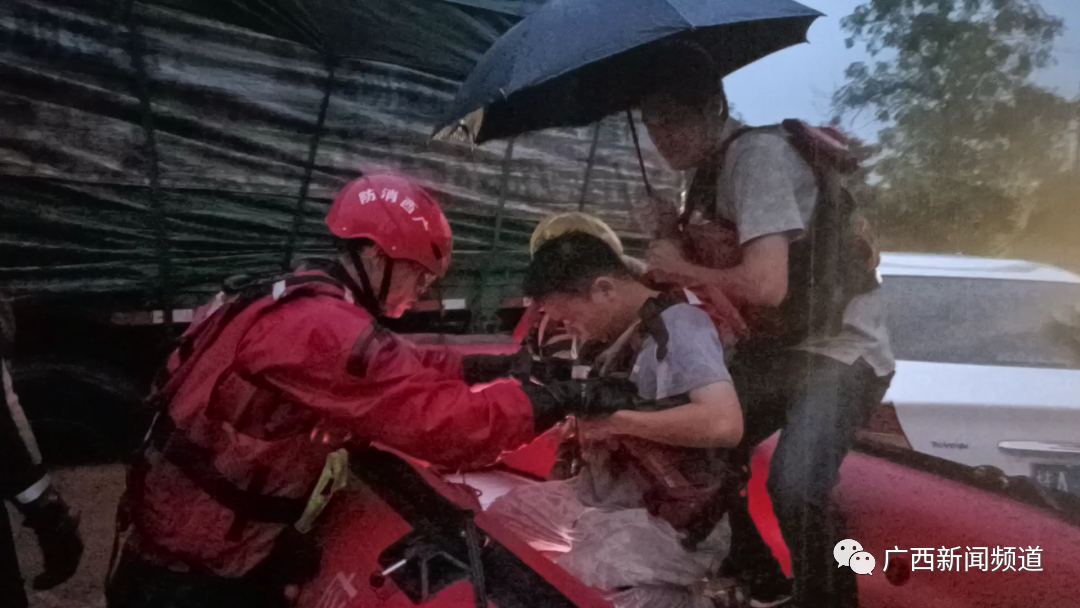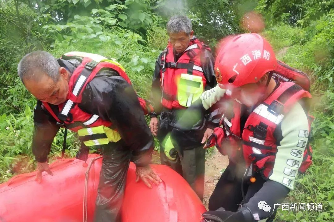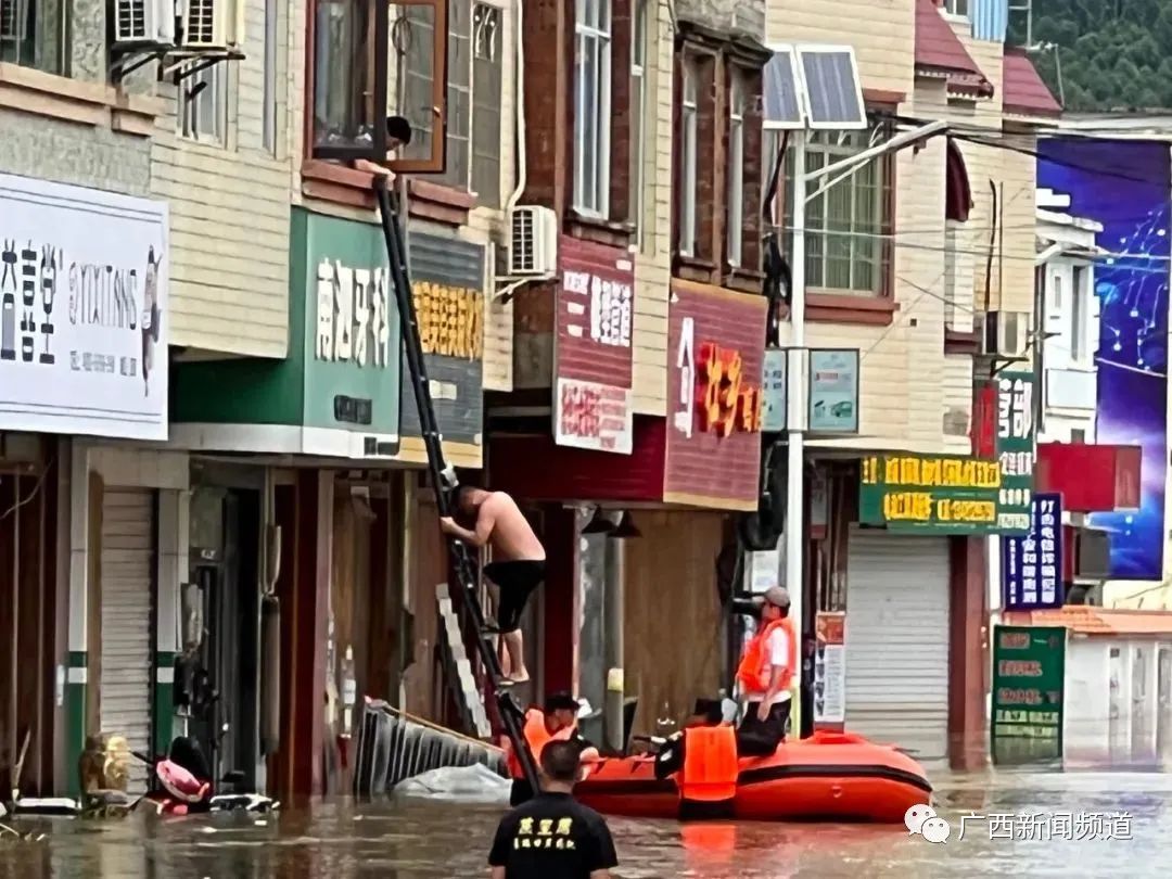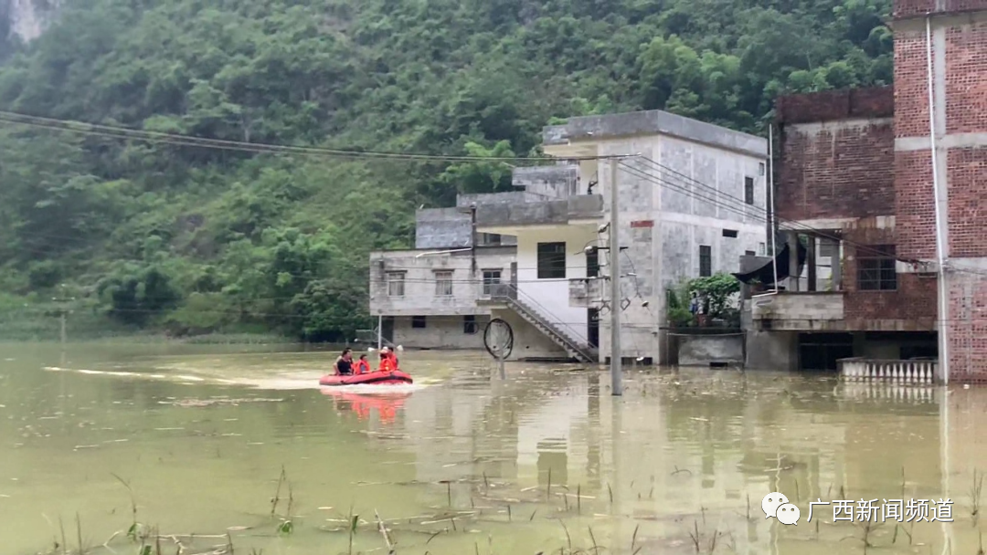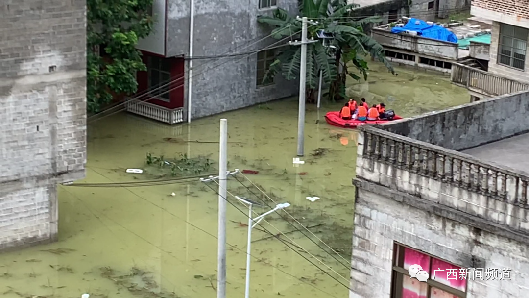 6月12日,受强降雨和上游泄洪影响,象州县多条河流水位暴涨。下午4点,一位居民突发疾病,却被突来的洪水困在了家中。