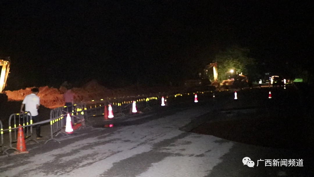 6月12日,桂平市紫荆镇乌龟潭路段也出现道路塌方情况,导致桂平市区往紫荆镇方向公路交通暂时中断。经公路养护部门连夜抢修,已抢修出一条便道供车辆通行,目前,抢修工作仍在进行中。