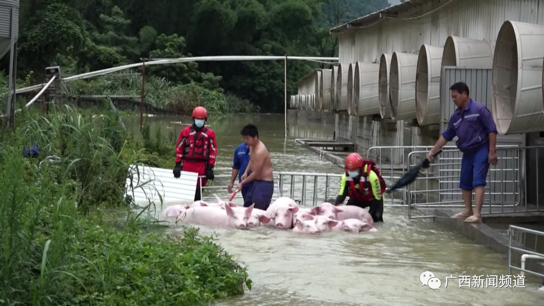 由于水位比较高,转移生猪难度非常大,但救援人员积极研究对策,采取搭建通道、围栏等方式进行转移。经过连续奋战,截至12日16点,共及时安全转移生猪5000多头,为猪场挽回经济损失500多万元。