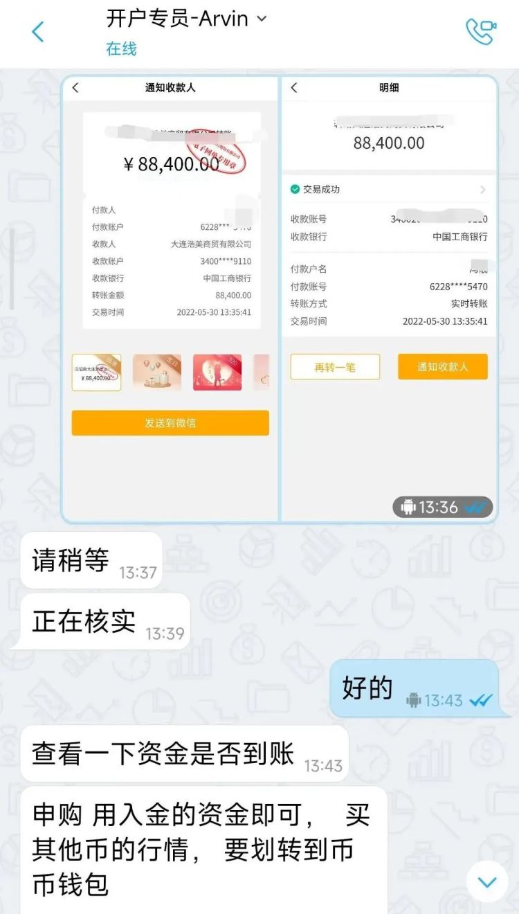 之后老师对冯先生进行购币指导、购买金额指导,冯先生陆续“投资”了四笔,累计50余万元。