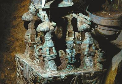 三星堆文物中有中国别处不多见的“偶像式构图”