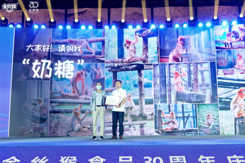 在金丝猴食品30周年庆典盛暨表彰大会上,金丝猴食品还同步举行了“奶糖”金丝猴的认领仪式,正式认领极具知名度的网红动物明星“奶糖”,启动保护濒危野生动物的“国宝计划”。