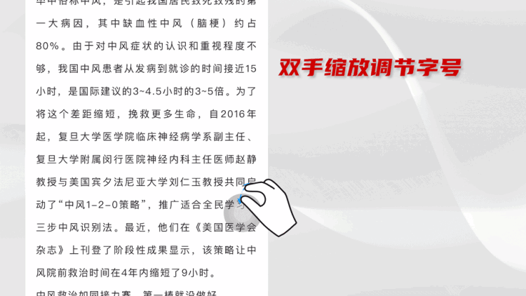 方法二:在文章阅读页,直接通过手势操作放大(← →)或缩小(→ ←)。