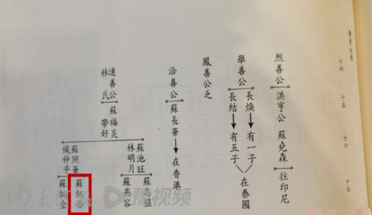 苏炳添是苏轼后人话题登上热搜后,古一村苏氏祖祠理事会会长苏根鸿接受媒体采访,称苏炳添是苏轼的第二十九代孙,并展示了族谱。该族谱始祖是苏洵,第十代是苏刘义,其中一页显示了苏炳添的名字。