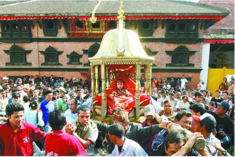 库玛丽的脚被认为是神圣的,不穿鞋也不能沾地面,不仅是信徒,尼泊尔高级政府官员在拜访库玛丽时也会抚摸她的脚以寻求祝福。库玛丽只在参加仪式活动时才能离开宫殿,需要用轿子抬着或被抱着走。除了日常接见信徒民众,在尼泊尔大型节日庆典中都有库玛丽参加,尤其是在每年9月至10月的杜尔迦法会节期间的盛大游行狂欢中,库玛丽女神会盛装出席,成千上万的人来见活女神并寻求她的祝福。
