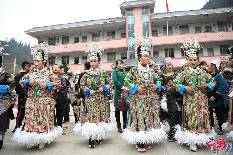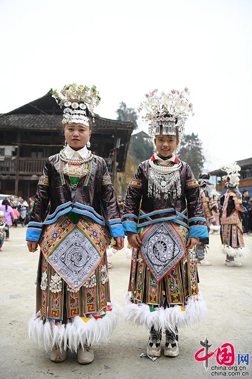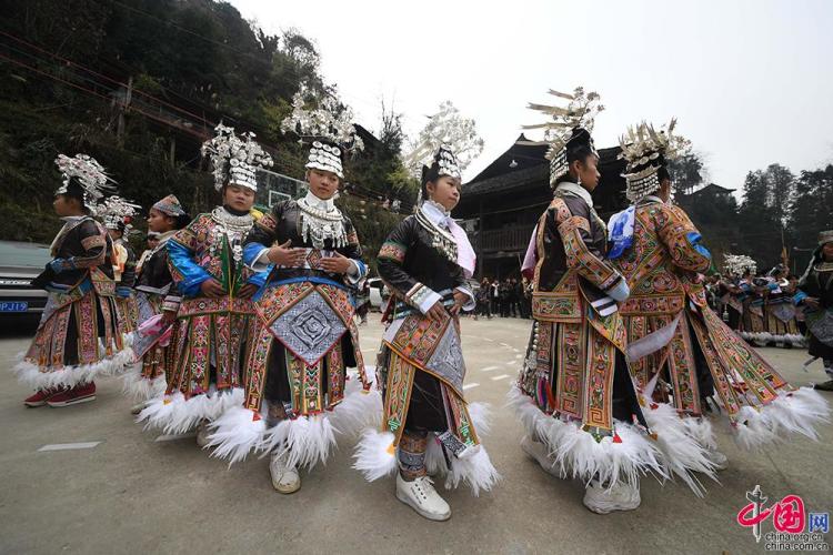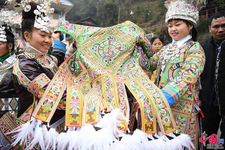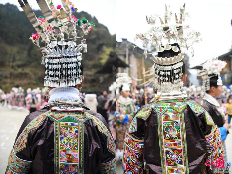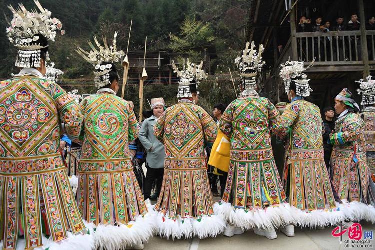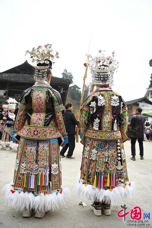 2019年1月26日,在贵州省黔东南苗族侗族自治州榕江县三江乡脚车苗寨鼓藏节活动上,苗族妇女身上的“百鸟衣”成为一道独特的风景。