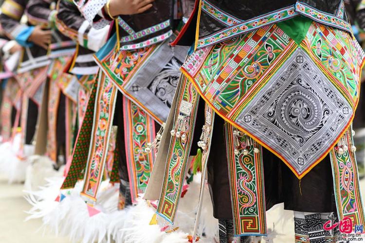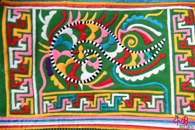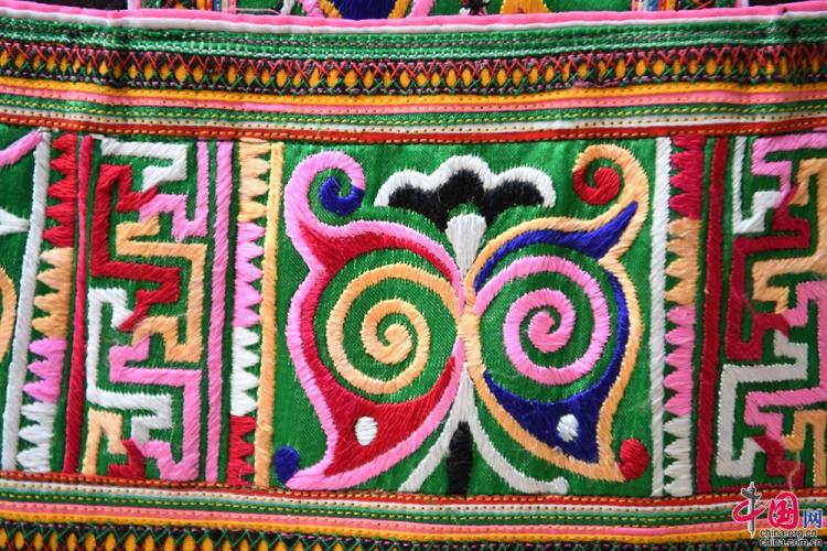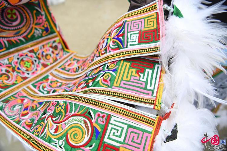 苗族百鸟衣是苗族妇女在节日等重要场合穿着的珍贵盛装。“百鸟衣”制作工序复杂,色彩绚丽,由苗族土布、各色锦缎丝绸和美丽的鸟类羽毛拼合而成,上面绣有花、鸟、鱼、虫、蝴蝶等生命图腾,反映了苗族人民精巧的刺绣工艺和独特的审美情趣。