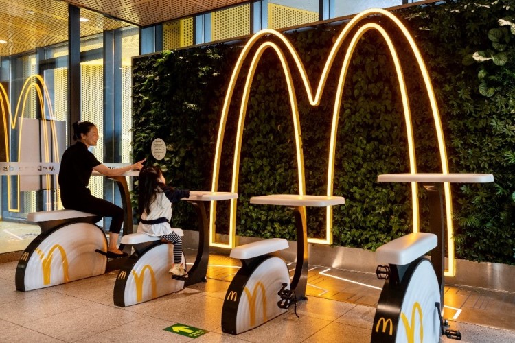 首钢园餐厅 “网红打卡点” 环保充电亲子单车则是麦当劳中国“重塑好物”项目的新成果,消费者通过踩动单车,驱动发电来为手机进行无线充电,还能点亮巨型麦当劳的M Logo,体验和感受绿色低碳生活带来的便捷与乐趣。“重塑好物”系列将来自麦当劳餐厅及行业的废旧塑料重新设计、利用,改造为餐厅和消费者所需的物品。“重塑好物”是麦当劳“绿色回收”核心,积极探索利用餐厅、供应链和行业内的废弃产品,赋予其第二次“生命”,提高塑料的循环使用效率,助力循环经济。此外,“重塑好物”系列产品中的海洋塑料回收椅和“懵懵小象”都将在首钢园餐厅与顾客见面。
