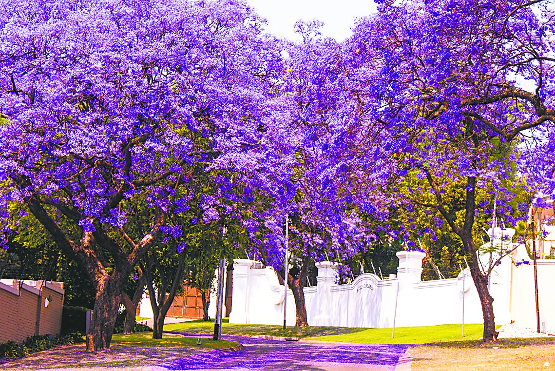 雨季到来前正是南非一年中最燥热、对生物最不友好的季节。人们嘴唇干裂,喉咙发紧;植物一天不浇水就难逃枯枝败叶的惨状。在这样的季节,驱车徐行在一条条蓝紫色的幽静隧道中,实在是难得的滋养疗愈。