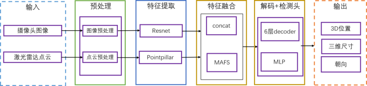 这是目前行业领先的一种感知方案。通过在BEV空间下构建一个通用的可容纳各种不同传感器的3D目标检测框架FUTR3d,对于不同的传感器输入数据,先做数据预处理,然后根据它们各自的模态形式分别用不同的backbone去提取特征。它更类似于前融合感知,完全由数据驱动,信息可以无损保留,精度更高。